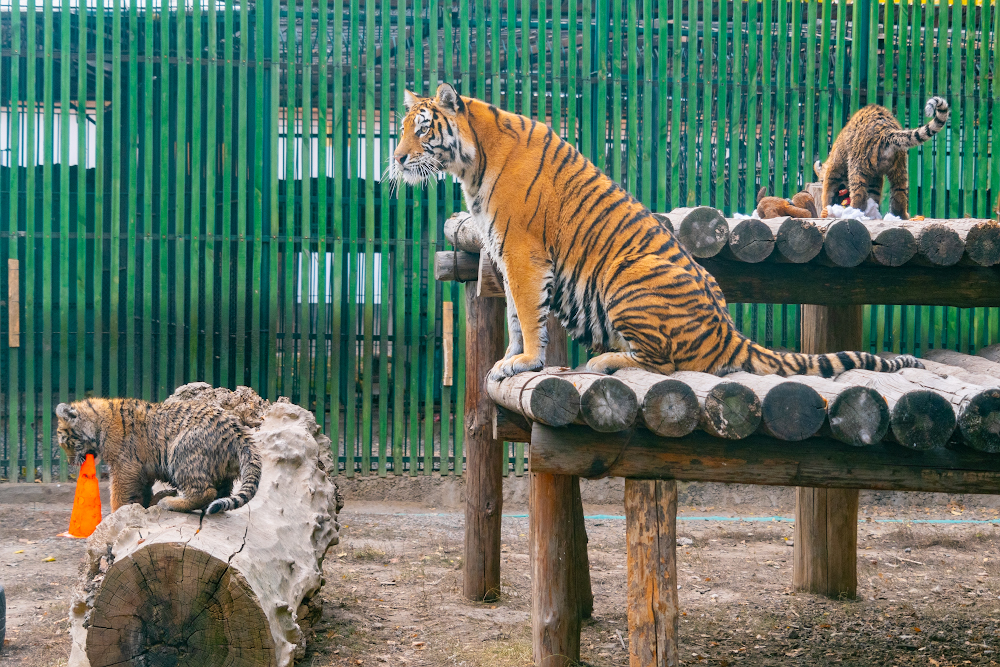 Тем не менее, мы стараемся, чтобы люди, придя в зоопарк, могли понаблюдать за животными. В качестве примера можно привести тигров, которые обитают в достаточно большом вольере. Но для того, чтобы минимизировать контакт с людьми, мы огораживаем вольер штакетником, снижая шум, а вместо решетки используем триплекс, чтобы у животного не было прямого контакта с человеком. То есть и тиграм удобно, и посетителям видно. В то же время мы всегда оставляем в вольере открытый переход, чтобы животные, устав от внимания, могли уйти в укрытие", – рассказала ветеринарный врач зоопарка Юлия Дудкина.
