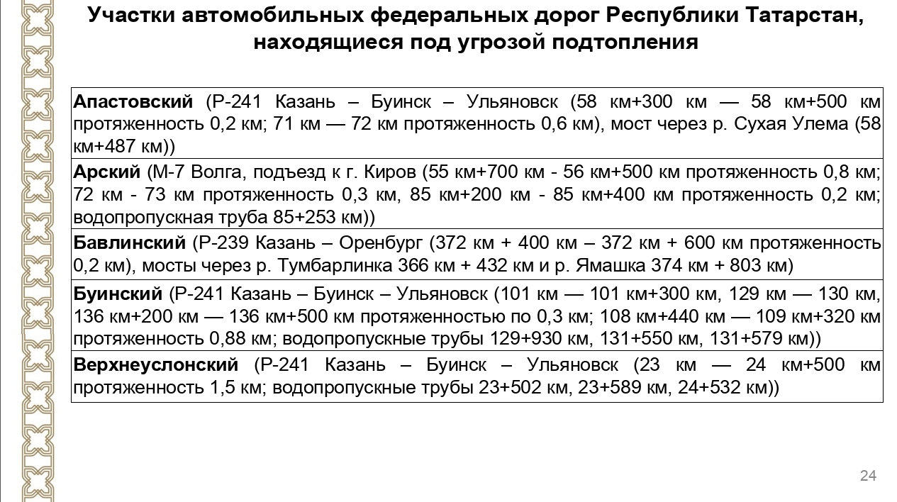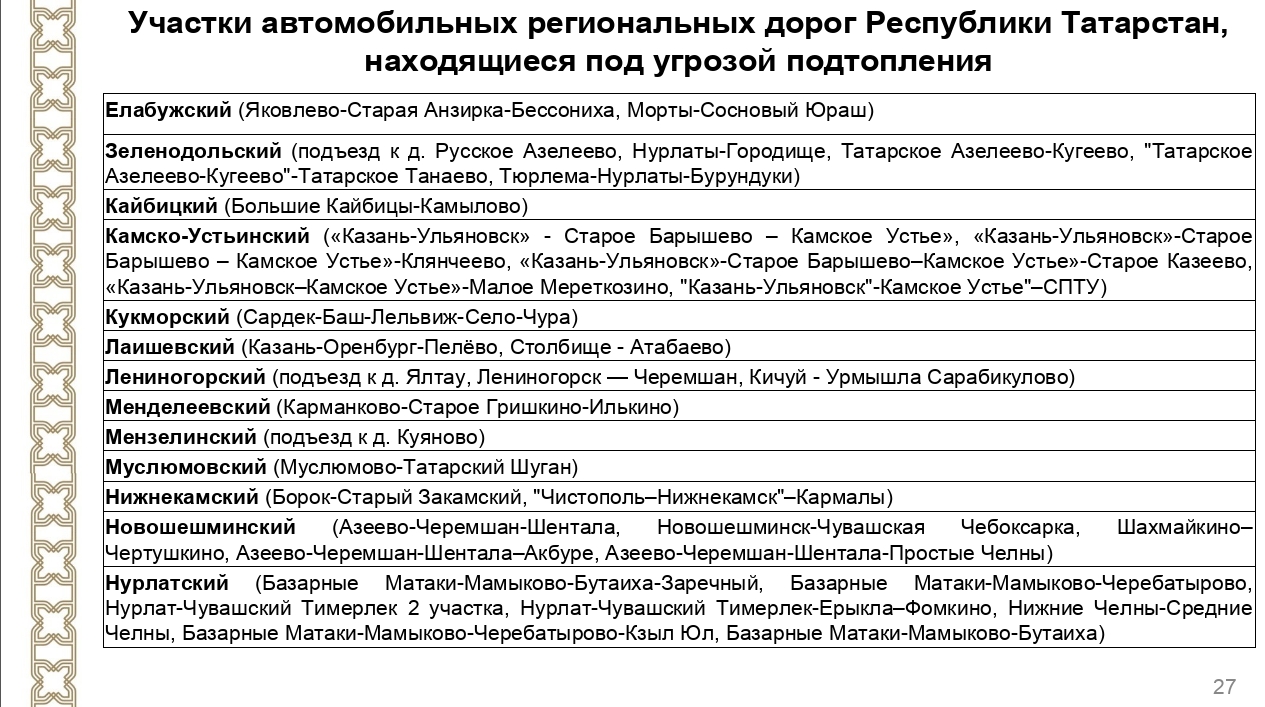 Наступление воды грозит автомобильным дорогам в нескольких десятках районов республики. Среди них участки в Апастовском, Арском, Бавлинском, Буинском, Верхнеуслонском, Алькеевском и других районах Татарстана. Подробнее на фото.
